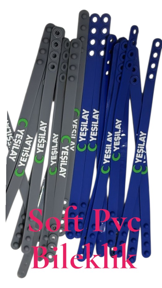PVC malzeme, suya ve dış etkenlere karşı dayanıklıdır, bu da bilekliklerin uzun süre bozulmadan kullanılmasını sağlar. Üzerine logo, yazı veya özel şekiller kabartma (3D) veya baskı yöntemiyle işlenebilir.